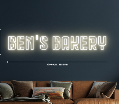 "Ben's Bakery": A warm, welcoming neon sign that could be used to advertise a bakery.