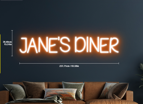 "Jane's Diner": A classic, vintage-style neon sign that could be used to advertise a small, family-owned diner.