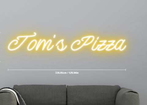 "Tom's Pizza": A fun, colorful neon sign that could be used to advertise a pizza restaurant.