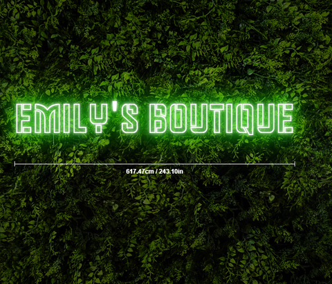 "Emily's Boutique": A stylish, feminine neon sign that could be used to advertise a fashion boutique.