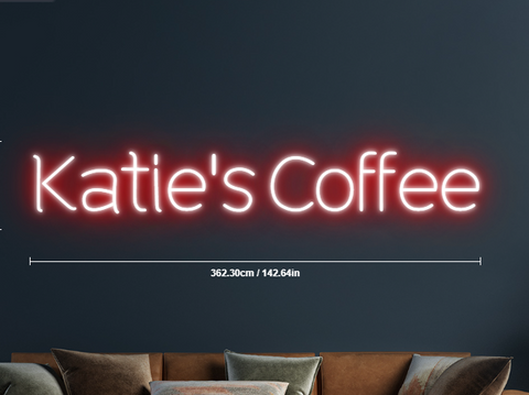 "Katie's Coffee": A cozy, inviting neon sign that could be used to advertise a coffee shop.