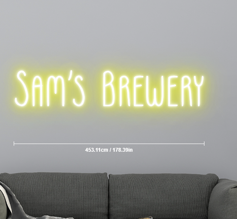 "Sam's Brewery": A creative, artisanal neon sign that could be used to advertise a craft brewery.