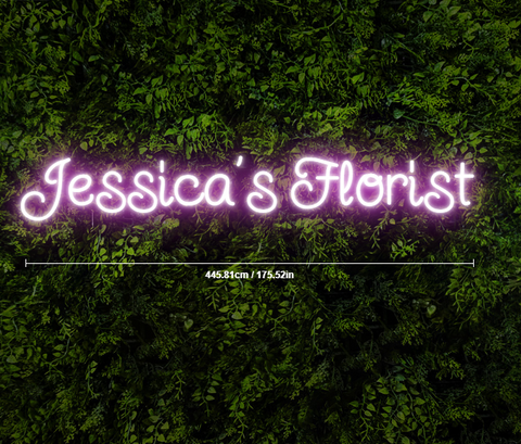 "Jessica's Florist": A bright, cheerful neon sign that could be used to advertise a flower shop.
